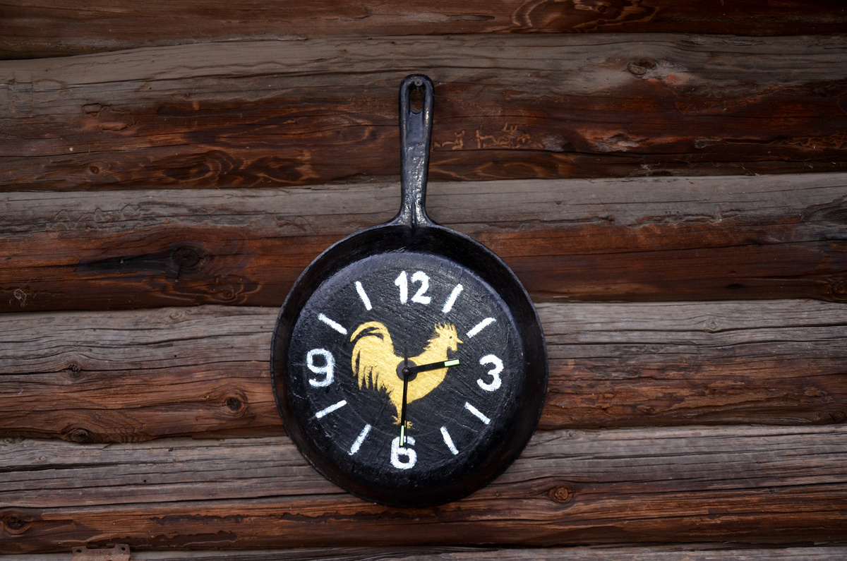 Откопал (в буквальном смысле) старую чугунную сковородку. Реанимировать ее возможностей не было никаких. Через пару дней размышлений было принято решение - сделать часы. Сказано - сделано.