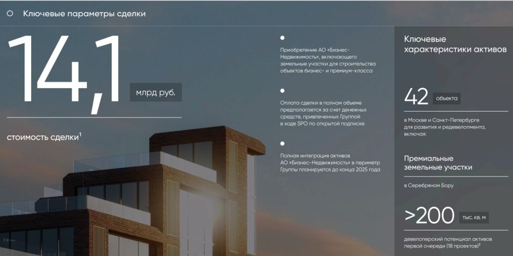 Эталон раскрыл механику интеграции Бизнес-Недвижимости. Почему этот портфель может стать драйвером? Редко на рынке девелопмента появляются сделки, которые меняют не просто портфель, а сам уровень бизнеса. Покупка АО «Бизнес-Недвижимость» — именно такой кейс: Эталон получил дефицитный набор локаций в Москве и Петербурге и впервые подробно показал механику его монетизации. ➖Портфель, который меняет стратегию 42 участка — цифра не уникальная. Уникальна география: редкие зоны в границах старой Москвы и Петербурга, где предложение ограничено физически. Для Эталоны это переход из «массового девелопера» в игрока, способного стабильно генерировать премиальную маржу на дефицитных локациях. Цена покупки портфеля “Бизнес-Недвижимости” - 70 тыс. руб. за квадратный метр. ➖Первая очередь: прогнозируемый cash-flow 17 из 18 объектов первой очереди уже прошли ГЗК — главный риск-фильтр отрасли. Потенциал выручки до 2032 года — 185+ млрд рублей. ➖Жилая недвижимость (10 проектов): ▪️старт от 2 млн ру