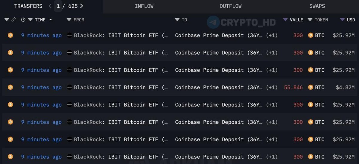 π ΠΠΎΠΌΠΏΠ°Π½ΠΈΡ BlackRock ΠΏΠ΅ΡΠ΅Π²Π΅Π»Π° 2156 BTC ($186m) Π½Π° Π±ΠΈΡΠΆΡ Coinbase Prime β ΠΊΠΎΡΠ΅Π»Π΅ΠΊ Π Π°Π½Π΅Π΅: ΡΠΈΠ½ΠΏΠΎΡΠΎΠΊΠΈ ΠΊΡΠΈΠΏΡΠΎ-ETF CryptΠΎ Headlines