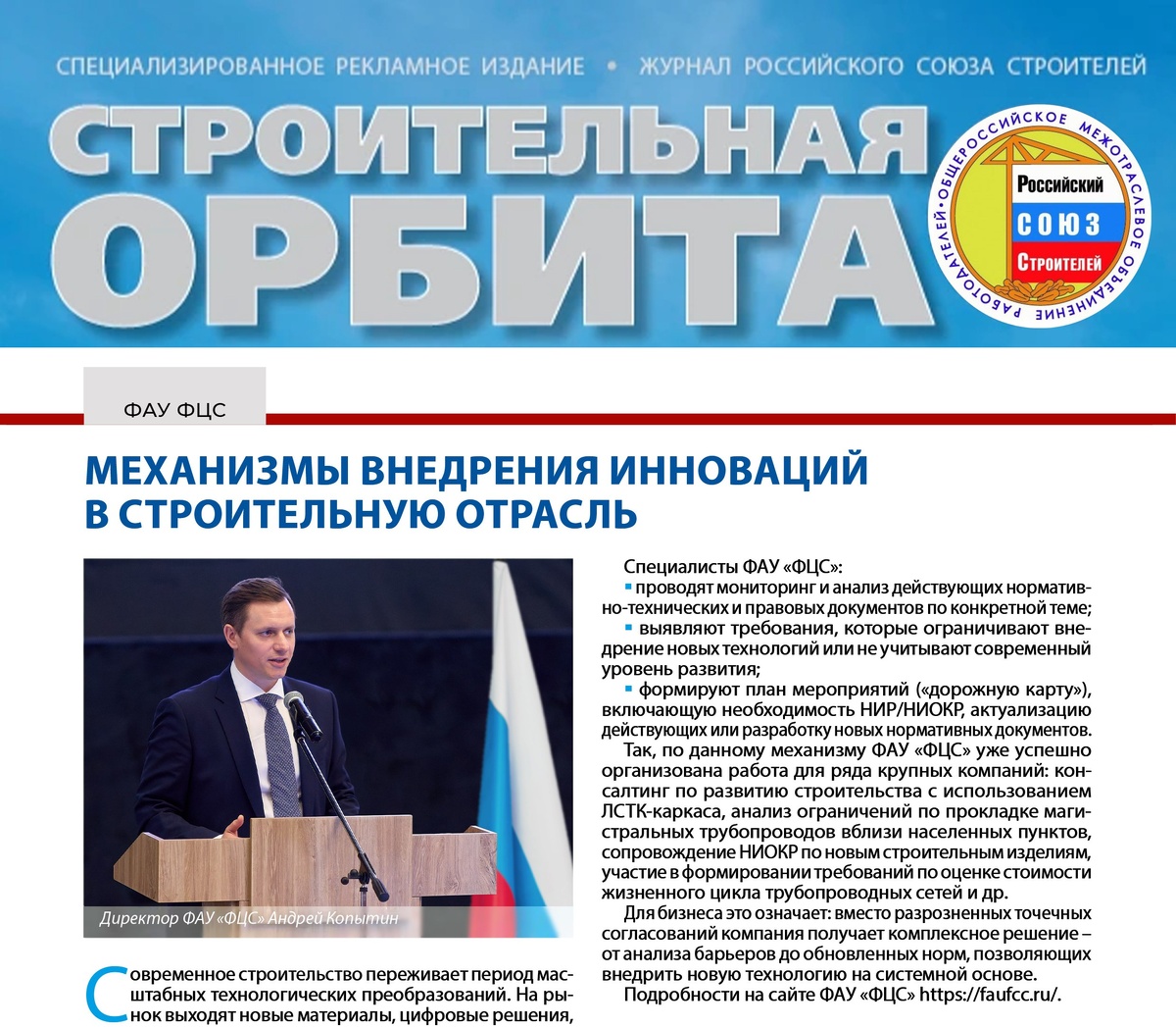 ⚡️ В новом номере журнала «Строительная Орбита» директор ФАУ «ФЦС» Андрей Копытин рассказал о механизмах внедрения инноваций в строительство