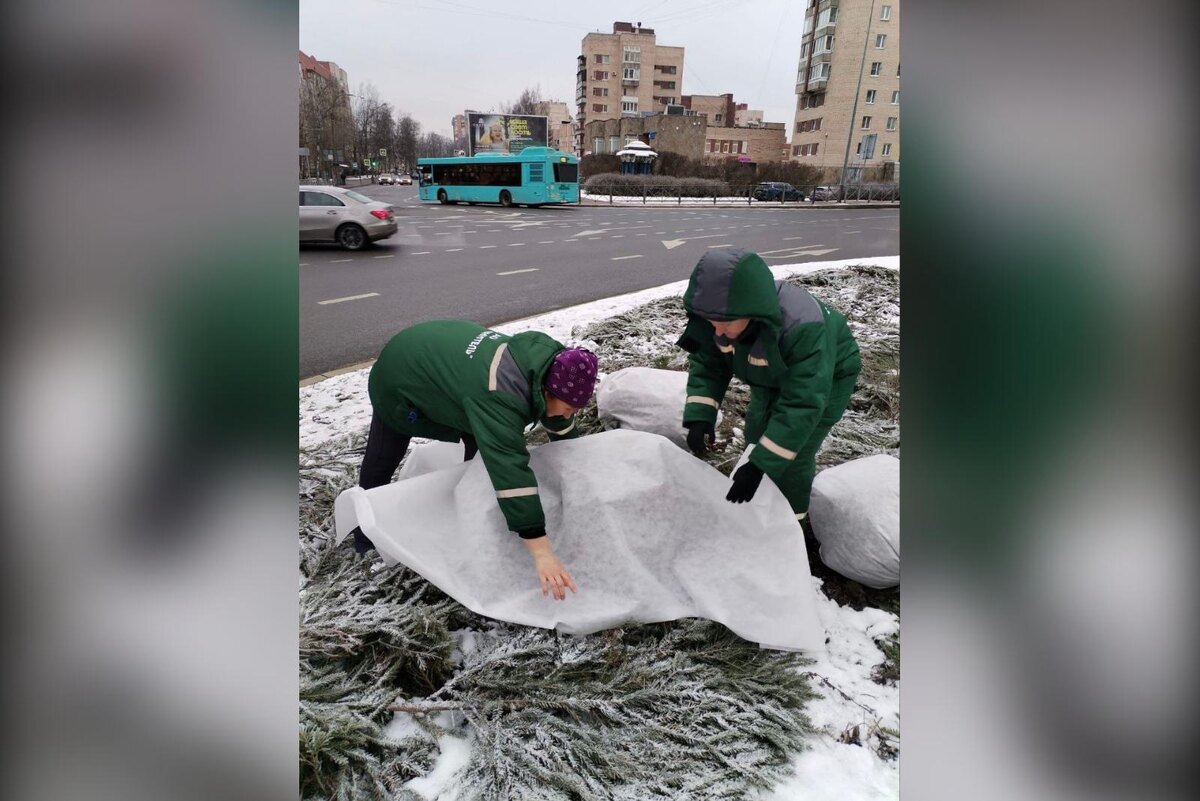 Сотрудники садово‑паркового предприятия «Озеленитель» проводят комплекс мероприятий по защите молодых деревьев и кустарников в преддверии холодов. Специальные работы по укрытию растений уже стартовали в ключевых локациях Сестрорецка. Специалисты обустраивают зимовку растений на следующих территориях: въездная часть города, территория у храма Первоверховных апостолов Петра и Павла, зона возле здания администрации Курортного района, Привокзальный сквер. В фокусе внимания – туи и рододендроны, пересаженные из сада‑трансформера. Для укрытия используется спанбонд – нетканый материал из полипропилена, который зарекомендовал себя как надежное средство защиты зеленых насаждений. Спанбонд изготавливается по специальной технологии нетканого полотна, чаще применяется в белом цвете разной плотности. Он обеспечивает круглогодичную защиту: зимой предохраняет от мороза, летом – от палящего солнца, сильного ветра и града. Ранее петербуржцам рассказали, какими цветами украсят город к Новому году.