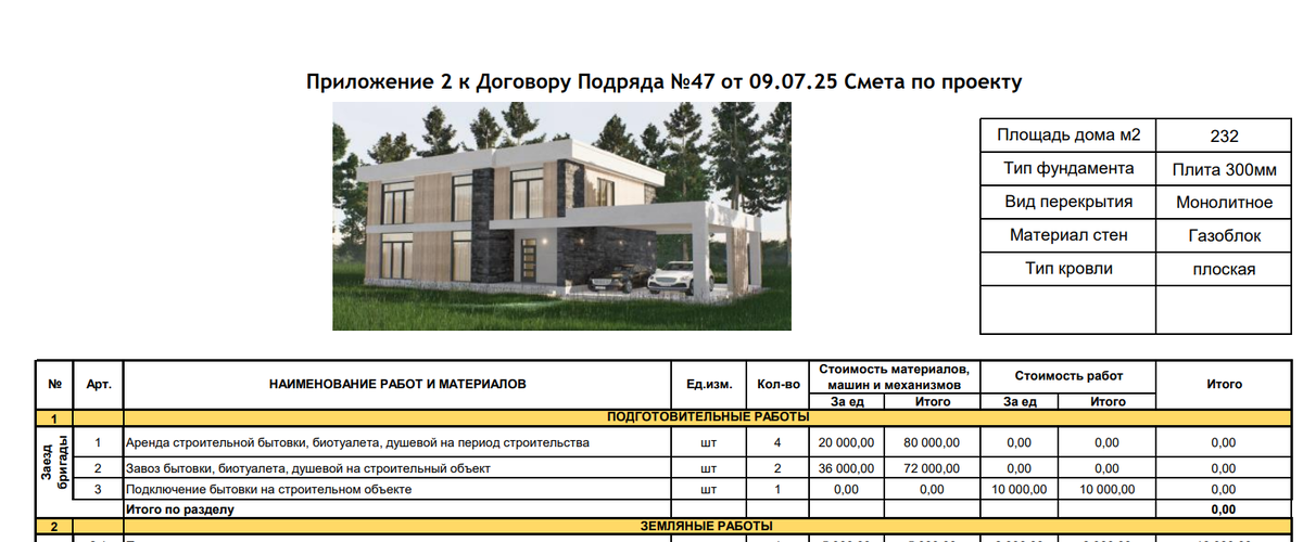 Итоговая строка в смете — 14 932 969 рублей 40 копеек — не случайная цифра. За ней стоит цепочка взаимосвязанных работ, материалов и решений, без которых дом просто не получится. Взять хотя бы аренду бытовки и биотуалета на площадке — это 80 000 ₽. Кажется, мелочь на фоне миллионов, но без этого просто не начнётся работа бригады… Смета — это карта строительства. Сначала готовят площадку, потом идут земляные работы, потом фундамент. Каждый этаж стоит денег. Например, только на устройство фундаментной плиты с арматурой и бетоном заложено больше 2,3 млн ₽. Из них почти 430 000 ₽ — это арматура диаметром 12 мм. Если здесь сэкономить, риски появятся позже, может быть, через несколько лет. Сейчас средняя стоимость строительства дома с подрядчиком в России сильно зависит от региона. В пригородах крупных городов суммы в 12–18 млн — это уже реальность, а не аномалия. Цены на материалы в последние годы росли, и хотя инфляция замедляется, подрядчики всё равно закладывают возможные колебания. Напр