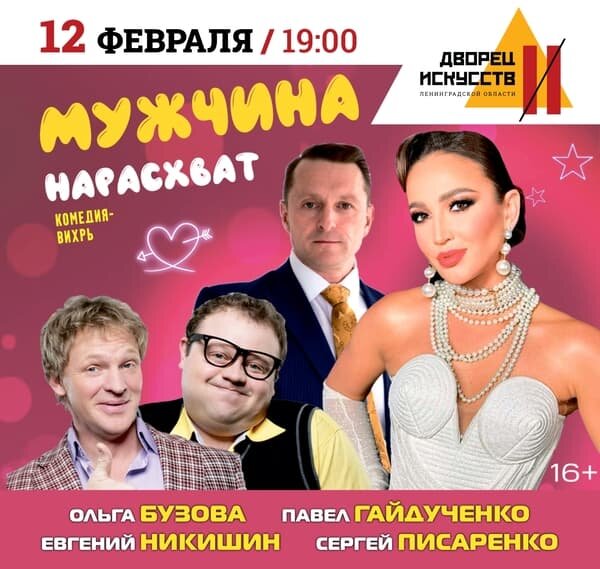 Февраль уже не январь — новогоднего волшебства как будто и не бывало. Светает позже, чем хотелось бы. Рабочие дни сливаются в один серый поток. А ещё — до весны так далеко, что даже верить не хочется. Но что, если прямо в этот четверг, 12 февраля, в 19:00, вы решите, что хватит быть только родителем, сотрудником, исполнителем обязанностей? Что сегодня — день, когда вы снова становитесь зрителем. Точнее — соучастником остроумной, дерзкой и невероятно смешной истории, которая развернётся на сцене Дворца искусств Ленинградской области. Представьте: главная героиня уверена — идеальный мужчина должен быть богатым. Ну, скажем, олигархом. Или хотя бы владельцем банка. А дальше — свадьба, путешествие, счастье…