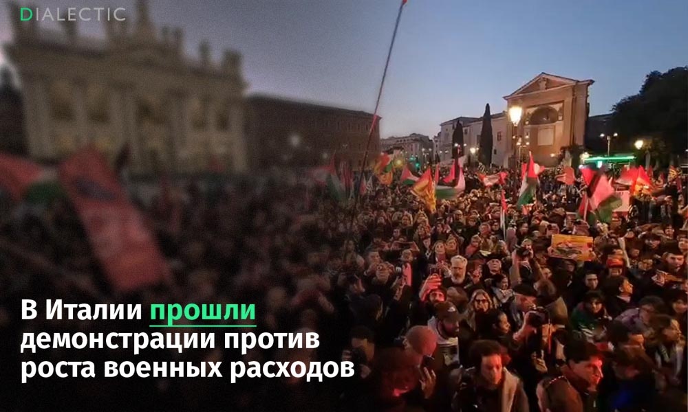 В Риме несколько тысяч человек приняли участие в национальной демонстрации солидарности с палестинским народом, выступив против политики итальянского правительства, которую протестующие считают соучастием в эскалации конфликта в Газе. Об этом сообщает La Repubblica. Организатором выступила профсоюзная организация Unione Sindacale di Base. К акции присоединились портовые рабочие из Генуи, пожарные, студенты и представители нескольких левых движений. В демонстрации участвовали известные международные активисты: климатическая защитница Грета Тунберг и специальный докладчик ООН по правам человека на оккупированных палестинских территориях Франческа Альбанезе. Они осудили проект бюджета Италии на 2026–2028 годы, в котором предусмотрен рост военных расходов, а также потребовали прекратить поставки оружия Израилю и любые военные или технические соглашения с ним. Протестующие несли палестинские флаги и скандировали «Свободная Палестина» и «Остановить соглашения с Израилем». Многие распевали «О