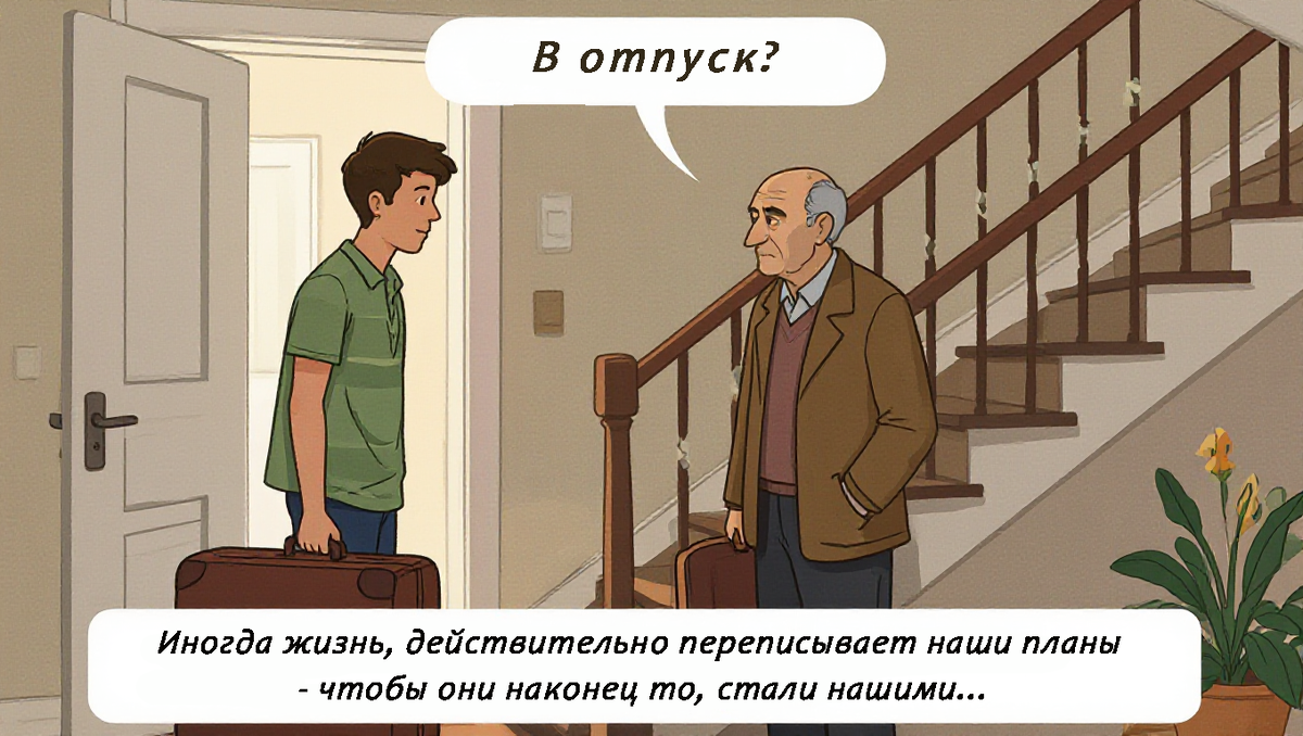 Почему перед поездкой возникает тревога Перед отпуском я всегда представлял море, солнце и долгожданный отдых. Но в этот раз всё вышло наоборот — чемодан стоял у двери уже час, а я никак не мог его закрыть. Мысли крутились в голове одна за другой: «Не забыл ли документы?» «Взять ли аптечку?» «А если перепутаю время вылета?» Такое состояние знакомо многим: чем ближе поездка, тем больше тревоги. И именно в таком состоянии я встретил соседа, который сказал фразу, изменившую весь мой отпуск. Совет, который неожиданно попал в точку Когда я закрывал дверь, из своей квартиры выглянул сосед Иваныч — спокойный, рассудительный мужчина, который обычно комментирует только погоду. Он увидел мой чемодан и заметил явное волнение. — В отпуск? — спросил он. Я кивнул. — Слушай, — сказал он просто и спокойно, — если что-то идёт не по плану, значит, план был не твой. Фраза прозвучала так буднично, что я даже не сразу понял её смысл. Но вспомнил я её очень вовремя. Что делать, если всё пошло не та