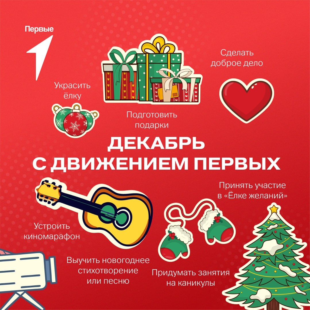 Ура, пришло время волшебства и уюта ❄️ Давай сделаем этот декабрь ярким и запоминающимся вместе с Первыми! Подготовили для тебя чек-лист для новогоднего настроения. Начни воплощать идеи прямо сегодня и делись в комментариях, чем ещё планируешь заняться в первый месяц зимы ❤️