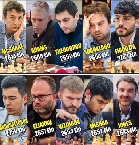 Чтобы вы имели полное представление об уровне турнира, представлю всех остальных участников соревнований: Николас Теодору (Греция, 2656), Павел Эльянов (Украина, 2656), Гавейн Джонс (Великобритания, 2655), Сэм Шенкленд (2649) и Абхиманью Мишра (2642) – оба из США, Майкл Адамс (2635) и Люк Макшейн (2615) – оба из Великобритании.