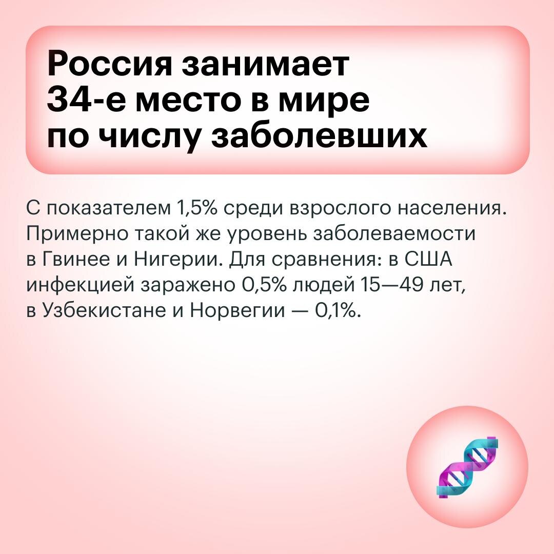 В России больше 1,5 млн человек с ВИЧ. Благодаря современному лечению они живут полноценной жизнью, могут иметь здоровых детей и не передавать вирус. Несмотря на это, люди с ВИЧ до сих пор сталкиваются с большими трудностями: стереотипами, отказами в приеме на работу, перебоями с выдачей лекарств. Ко Всемирному дню борьбы со СПИДом мы собрали несколько фактов о том, как обстоят дела с ВИЧ в России, и сделали подборку важных статей. 🔶 «ВИЧ можно подхватить на маникюре, а болеют им только наркоманы»: 16 популярных мифов о вирусе иммунодефицита человека 🔶 Как я живу с ВИЧ и почему не скрываю диагноз: история Юли 🔶 15 фондов и сообществ, которые помогают людям с ВИЧ 🔶 Поцелуи, общая посуда и рукопожатия: как нельзя заразиться ВИЧ 🔶 Что такое до- и постконтактная профилактика ВИЧ