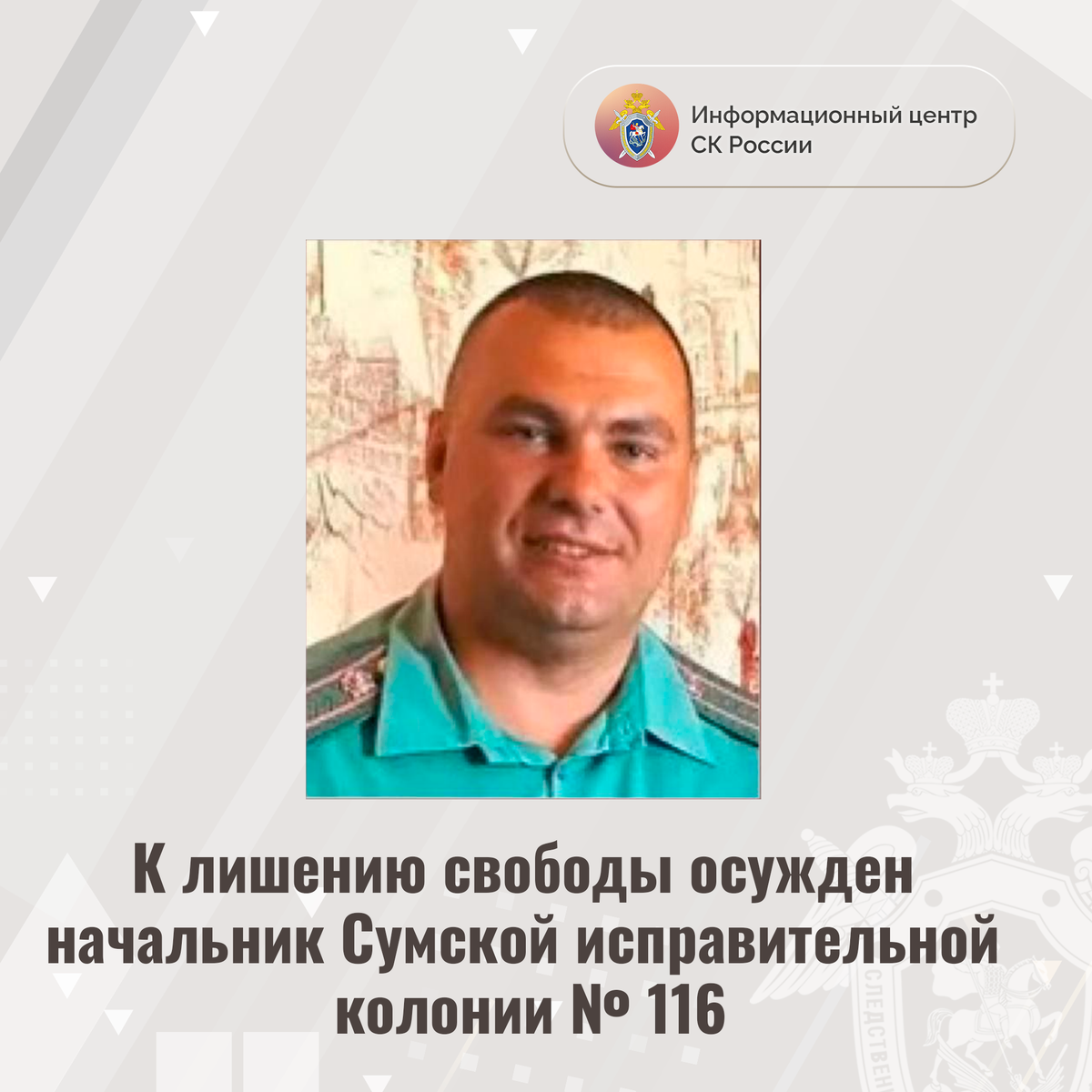 К лишению свободы осужден начальник Сумской исправительной колонии № 116 Доказательства, собранные военными следственными органами СК России, признаны судом достаточными для вынесения приговора в отношении начальника Сумской исправительной колонии № 116 Александра Бубенца. Он признан виновным в жестоком обращении с военнопленными (ч. 1 ст. 356 УК РФ). Следствием и судом установлено, что Бубенец, являясь должностным лицом, умышленно допустил в отношении военнопленных посягательство на физическую неприкосновенность, жестокое обращение, акты насилия, оскорбительное и унижающее обращение, в том числе со стороны СБУ Украины. По ходатайству военного следователя Бубенцу заочно избрана мера пресечения в виде заключения под стражу, он объявлен в международный розыск. Приговором суда Бубенцу назначено заочно наказание в виде лишения свободы на срок 11 лет с отбыванием в колонии строгого режима. #СледственныйКомитет #СКРоссии #СКР #ИЦСКРФ #ИЦСКР