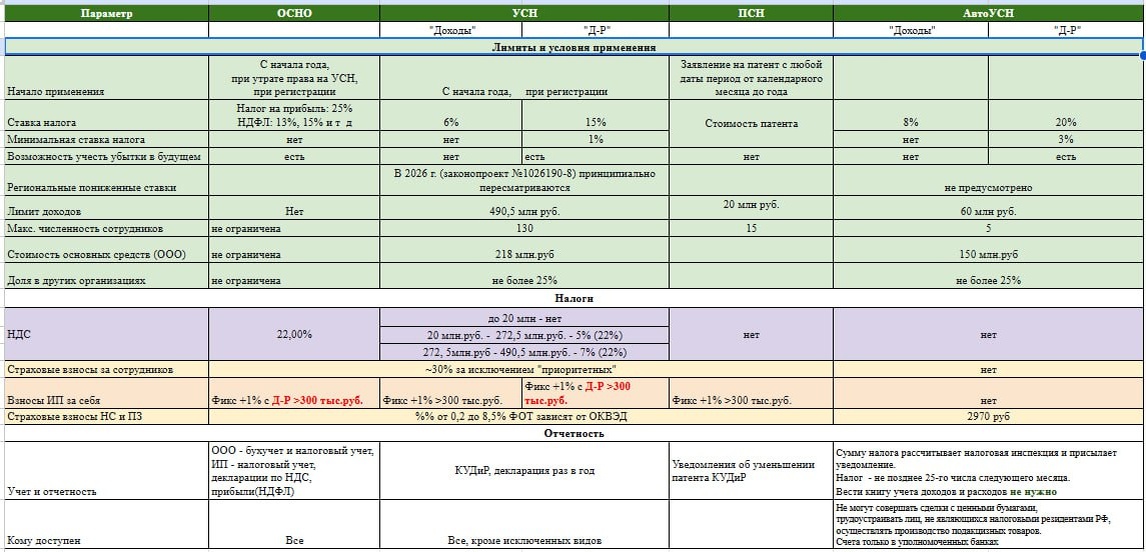 Есть еще кто запутался в режимах налогообложения? Вам в помощь короткая таблица.