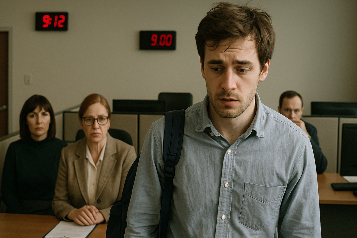 В их отделе время любили почти так же сильно, как отчёты. На стене висели сразу двое электронных часов: одни — у входа, другие — прямо над столом начальника, чтобы никто не мог забыть о времени. Каждое утро в 9:00 дверь в офис закрывалась с характерным щелчком, и те, кто входил после, на какое-то время становились главной новостью дня.