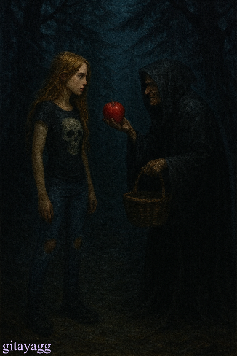 -Устала, наверно, - с улыбкой добродушной произнесла бабушка, - Вижу, ты голодна. На, съешь яблочко, - старческая рука протянула яблоко неописуемой красоты.