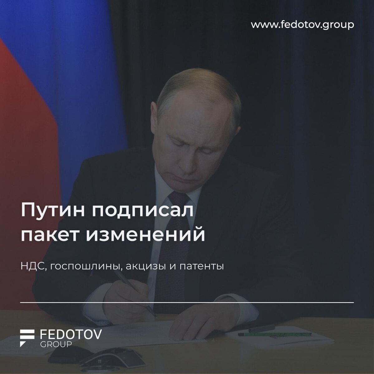Путин подписал пакет изменений: НДС, госпошлины, акцизы и патенты