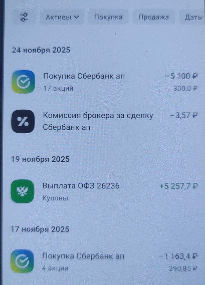 - реинвестирование дивидендов и купонов, поступивших в октябре, - ₽50 тыс. - дивиденды от ФосАгро, Новатэк, Полюс, Газпромнефть, Татнефть, дивиденды от трех фондов Активо, купоны по ОФЗ и корпоративным облигациям.