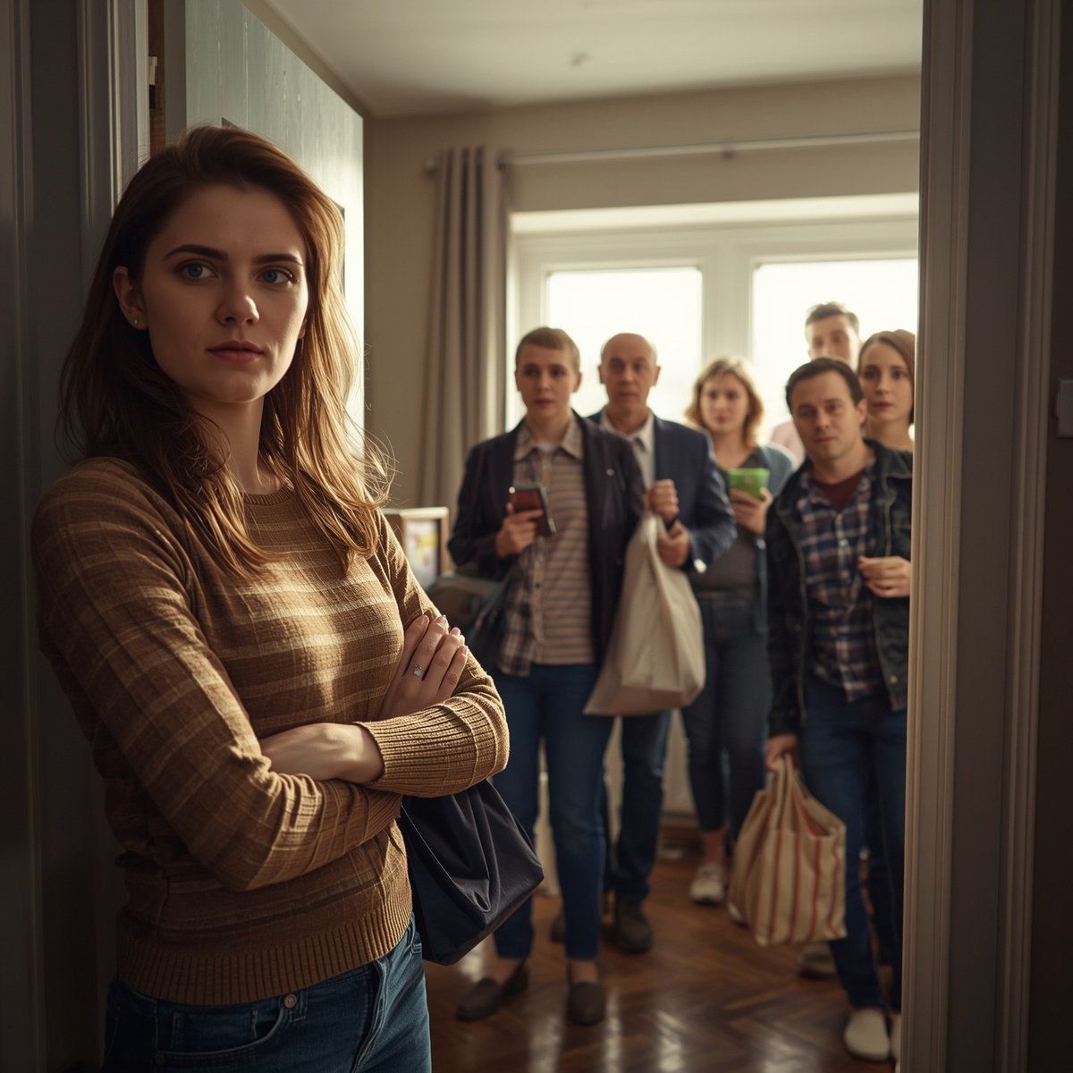 Она попробовала. Долгие унылые гудки тянулись, как резинка от старых плавок. Никто не ответил. Когда Ника поднялась на свой этаж — да, это была ее квартира, купленная еще до знакомства с Кириллом, маленькая, с облизанными временем подоконниками, где солнечные пятна по утрам круглые, как монеты, — за дверью звучал гул. Смех, звон посуды, вкрадчивые реплики. Ника приложила ладонь к дереву — оно было теплым. Открыла ключом, и дверь распахнулась.