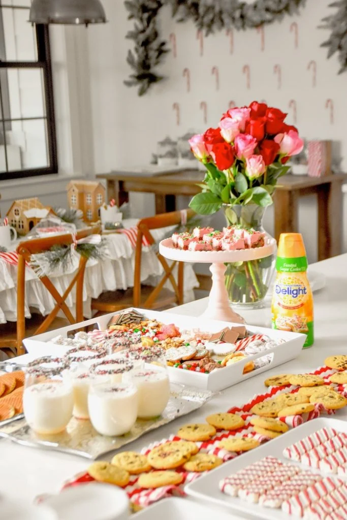 У американцев особые отношения с печеньем: супермаркеты полны этих сладостей, производят множество готовых смесей для выпечки, а печенье добавляют даже в салаты! Мы больше любим готовить сами, а из салатов предпочитаем оливье :) Но одна традиция нам очень приглянулась, да и она вписывается в нашу предновогоднюю или посленовогоднюю суету! Это — вечеринка по обмену печеньем! Называется Coolie Swap. Собирается 10 или больше человек, обычно это мамочки, и приносят каждая своё печенье. На вечеринке его пробуют, а потом можно взять с собой понравившееся. Мы нашли вот эту рождественскую вариацию и решили, что нам такое надо! А если перед Новым годом нет времени, то можно провести это мероприятие в новогодние каникулы. Декораторы этого праздника вдохновились не только американской традицией, но и трендовым блюдом последних лет — шаркутери (charcuterie). Это деревянные доски с композицией из закусок. Изначально только мясо, но теперь доски делают на любую тему! Рецепт праздничного сахарного печ