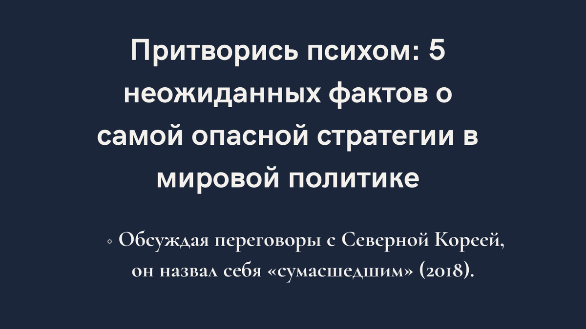 Притворись психом: 5 неожиданных фактов о самой опасной стратегии в мировой политике