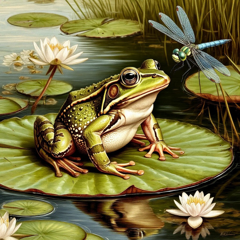 После особенно обильных дождей или полива их можно увидеть охотящимися, и тогда горе маленьким улиткам, слизням, дождевым червям и им подобным! Нет ничего любопытнее, чем видеть их в яркий солнечный день, сидящими на краю пруда или даже на широких листьях кувшинок ('Nymphaea alba' или 'Nuphar luteum'), греющимися в тёплых лучах, от которых их цвета мерцают, а затем, внезапно, молниеносно, расслабляя мощные мышцы задних ног, они прыгают и на лету хватают пролетевшее поблизости неосторожное насекомое.