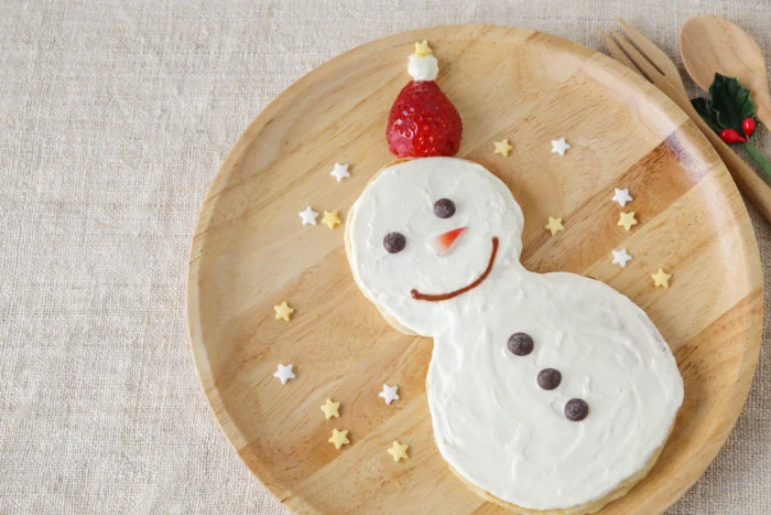С наступлением зимы хочется особенного рождественского завтрака. Независимо от повода или случая, эти блинчики-снеговики — самый простой и весёлый рецепт завтрака на свете! А ваши дети могут даже помочь с декором. Сначала соберите все необходимое: Продолжайте читать, чтобы получить невероятно простые инструкции по изготовлению блина-снеговика! Шаг 1: Приготовьте блины по вашему любимому рецепту или из готовой смеси. Сделайте их двух размеров: большие и маленькие. Шаг 2: Взбейте сливки и намажьте ими блинчики-снеговиков (один маленький для головы и один побольше для туловища). Шаг 3: Украсьте снеговика черникой для глаз и пуговиц, а также клубникой для шапочки. Разрежьте клубнику на треугольники, чтобы получился нос. На кончик шапочки поместите зефирку. И не забудьте про красивые тарелки из нашей новогодней коллекции! Источник: karaspartyideas.com