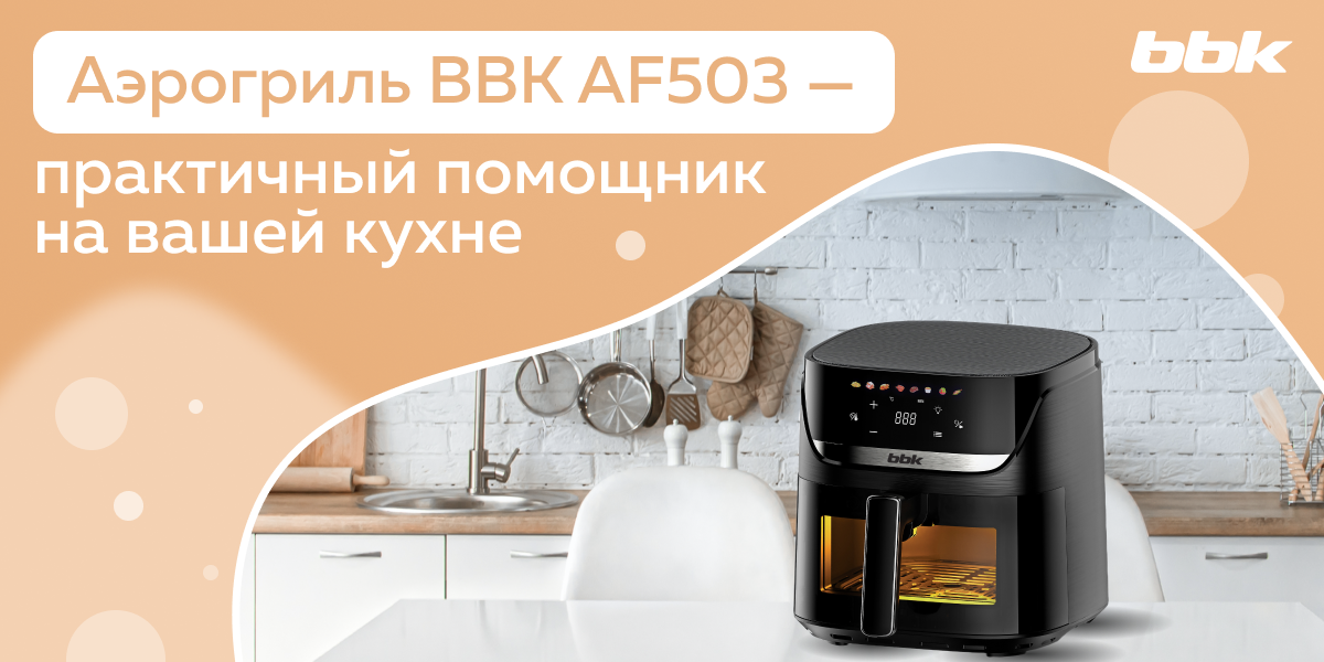 Аэрогриль BBK AF503 — это практичный и компактный прибор для домашнего приготовления. Он отлично подойдёт тем, кто хочет готовить быстро, вкусно и при этом использовать минимум масла. Сенсорное управление и LED-дисплей делают работу с устройством простой и наглядной, а автоматические программы помогают выбрать подходящий режим для разных блюд. Когда еда готова, прибор подаст звуковой сигнал. Чаша объёмом 6 литров позволяет готовить блюда для небольшой семьи или порционные закуски. Корпус выполнен из прочного пластика, а решётка с антипригарным покрытием упрощает уход за устройством. Мощность аэрогриля составляет 1700 Вт, нагрев осуществляется с помощью встроенного ТЭНа. Диапазон температур от 80 до 200 °C даёт возможность поджаривать, запекать, готовить на пару и разогревать блюда. Таймер на 60 минут помогает не пережарить продукты, а компактные размеры (340×280×280 мм) и вес всего 4 кг делают прибор удобным для размещения на кухне и лёгким в использовании. Чёрный корпус придаёт устро