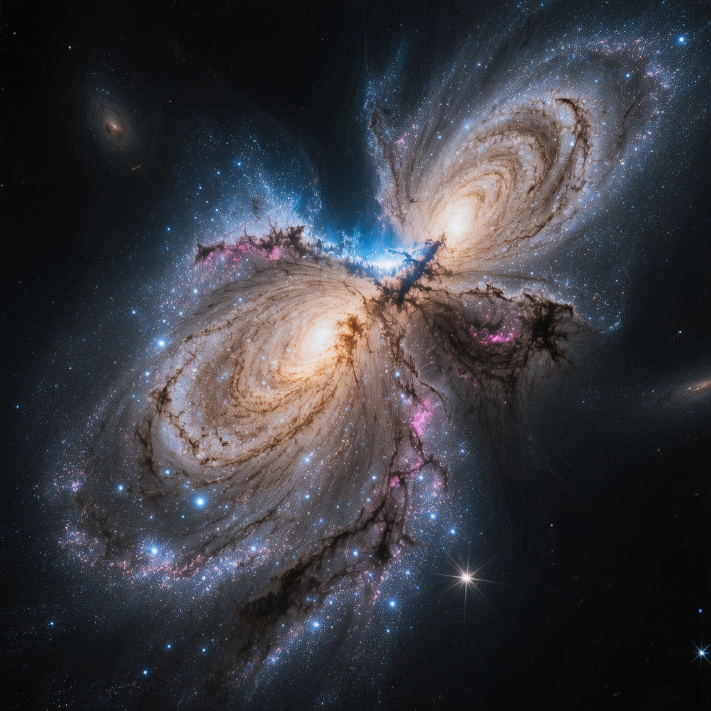 Что будет при столкновении двух галактик в которых время течет в противоположных направлениях? Короткий ответ: С точки зрения современной физики, такого столкновения не может произойти, потому что не существует галактик, в которых время течет в противоположную сторону. А теперь давайте разберем подробнее, почему это так и что бы произошло, если бы мы попытались представить такой гипотетический сценарий. 1. Почему такого не может быть? Физика времени · Время — не направление: Время — это не то, что "течет" как река. В физике время — это измерение, параметр. Стрела времени (направление от прошлого к будущему) — это не фундаментальное свойство времени самого по себе, а следствие энтропии (мера беспорядка во Вселенной). · Второй закон термодинамики: Энтропия замкнутой системы (как наша Вселенная) всегда возрастает. Мы называем "будущим" направление, в котором энтропия увеличивается. Это и есть "стрела времени". · Общая для всей Вселенной: Эта стрела времени едина для всей наблюдаемой Вселе