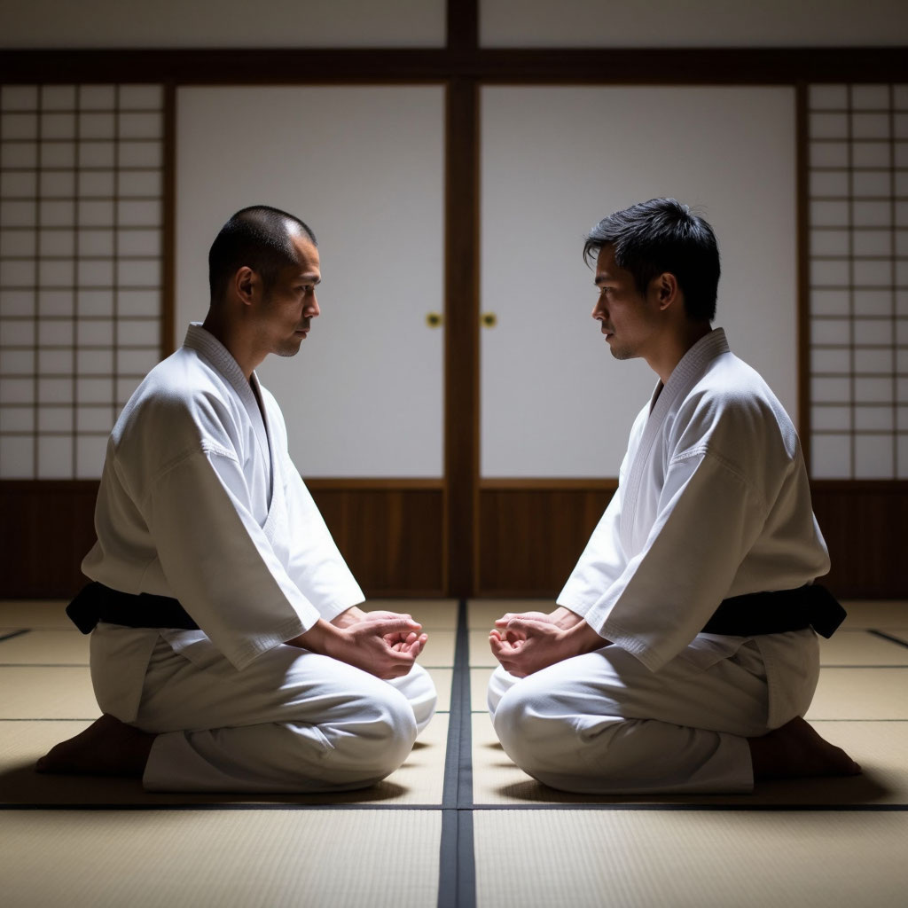 Одной из самых глубоких и загадочных практик в Айкидо является Юмэцуги (弓滅術) — парное упражнение, напоминающее танец или движущуюся медитацию. Это не боевая техника, а инструмент для развития сверхглубокой связи с партнером и тонкого ощущения энергии «Ки(ци)». Два партнера сидят друг напротив друга в позе сэйза. Их руки соприкасаются, и они начинают выполнять медленные, плавные круговые движения, полностью синхронизируя свое дыхание. Нет лидера и ведомого — оба партнера одновременно ведут и являются ведомы. 1. Чувствительность (Кан): Умение ощущать малейшее движение, напряжение или намерение партнера через тактильный контакт. 2. Гармонию ритма: Движения и дыхание двух людей становятся единым целым. 3. Состояние «Муссин» (пустого ума): Практика требует полной концентрации на ощущениях, вытесняя посторонние мысли. 4. Доверие: Вы учитесь полностью отпускать контроль и доверять партнеру, образуя с ним единую систему. Это сложно! Сначала движения рваные, партнеры пытаются доминировать или,