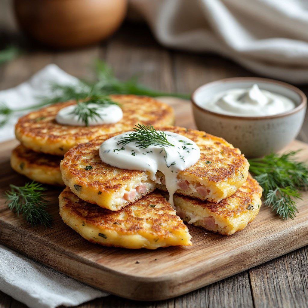 🔥 Через 20 минут – хрустящие, сытные, с начинкой мечты! Иногда хочется чего-то домашнего, горячего и по-настоящему вкусного… но сил и времени – ноль. Я подскажу простой рецепт потрясающих картофельных драников с добавлением ароматной ветчины и тающего сыра! Эти хрустящие лепëшки станут отличным дополнением к вашему завтраку или ужину, а готовятся они всего за 20 минут! 😉 Ингредиенты (на 4 порции): - Картофелины (средние) – 3 шт. - Яйцо куриное – 1 шт. - Ветчина – 50 г - Твëрдый сыр – 70 г - Небольшая луковица – 1 шт. - Мука – 2 ст. л. - Соль, перец – по вкусу - Растительное масло – для жарки Приготовление: Очистите и натрите картофель на крупной терке. Добавьте мелко нарезанную ветчину, тёртый сыр, измельчённый лук и слегка взбитое яйцо. Всыпьте муку, посолите и поперчите смесь. Хорошо перемешайте до однородности. Разогрейте сковороду с маслом и выкладывайте небольшие порции теста ложкой, формируя лепëшки. Обжаривайте каждую сторону примерно по 3 минуты