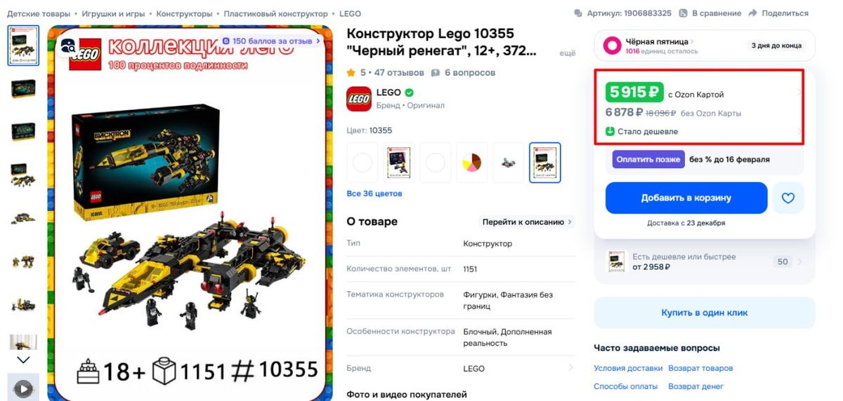 Ловите свежую крутотенечку!🚨 Набор 10355 LEGO Icons Blacktron Renegade везде от 10-12 тысяч, а вот тут на Озоне — значительно дешевле!