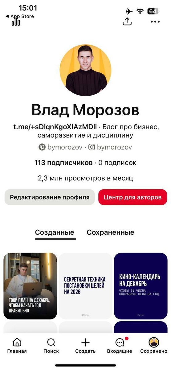 У нас более 2.6 млн просмотров за месяц в Пинтересте, откуда трафик идет на Инст🥹