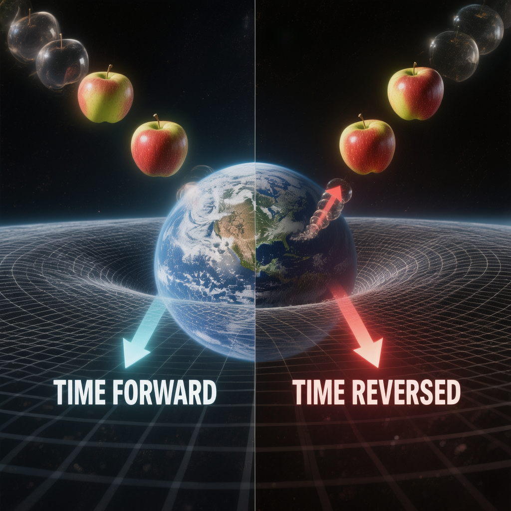 Гравитация не зависит от направления времени. На чем основано это утверждение? Утверждение о том, что гравитация (в рамках Общей теории относительности Эйнштейна) не зависит от направления времени, основано на ее T-симметрии. Давайте разберем это шаг за шагом. 1. Что такое T-симметрия? T-симметрия (симметрия относительно обращения времени) — это принцип, который означает, что если мы мысленно "прокрутим пленку" физического процесса назад (t → -t), и полученный процесс будет выглядеть так же физически правдоподобно и подчиняться тем же законам, то данный закон является T-инвариантным. Проще говоря: если процесс, обращенный во времени, не нарушает законов физики, то эти законы симметричны относительно времени. 2. Гравитация Эйнштейна и T-симметрия Уравнения Эйнштейна — это фундаментальные уравнения Общей теории относительности (ОТО), которые связывают кривизну пространства-времени (проявление гравитации) с содержащейся в нем материей и энергией. Если мы в этих уравнениях произведем заме