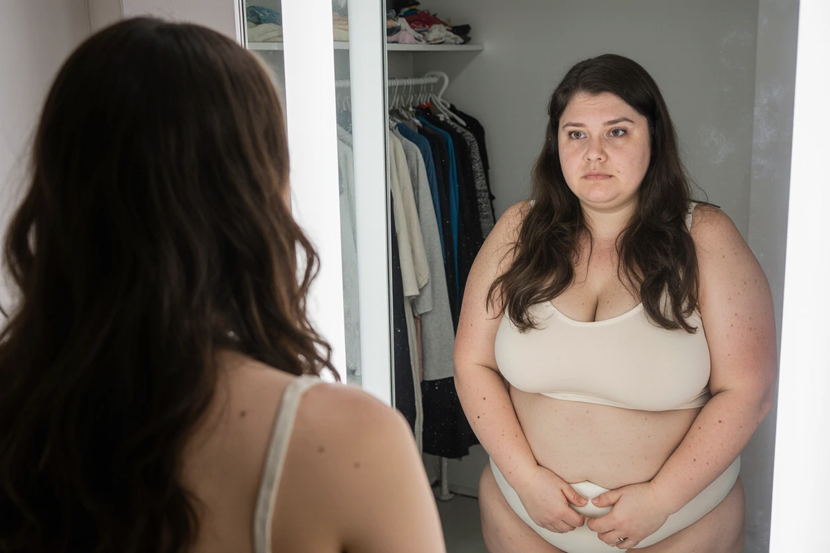 Я ненавидела себя. Не абстрактно — а физически, до тошноты. Каждый раз, когда заходила в магазин одежды, хотелось развернуться и уйти. Не потому что не было размеров — они были. А потому что в примерочной я видела не себя, а проблему. Своё тело. Эти ляхи, которые не помещались в джинсы. Это лицо, которое будто распухало с каждым месяцем. Я не могла на это смотреть. Я ненавидела и себя и эти магазины! Я делала то, что делают все девочки в моём положении, зарегистрировавшись на сайте знакомств. Я выставляла фото, где чуть приподнят подбородок, вытянуто лицо, фильтр немного. Сообщения были, интерес был. Но до встреч доходило редко. А если доходило, я видела этот взгляд. Мгновенный, будто бы они оценивают: “на фото ты была другой”. И всё. После этого даже не хотелось пытаться. Мне было двадцать, и я весила 120 килограммов С десяти лет я сидела на диетах: монодиеты, подсчёты калорий, голодания, интервальное питание, даже карнивор: мясо и яйца, и ничего больше. Первые дни — восторг. А пото