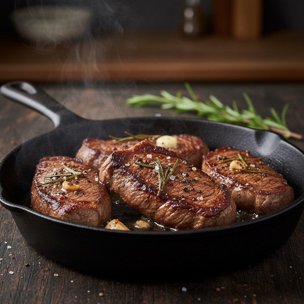 Жареное мясо на сковороде – это классика, которая никогда не выходит из моды. Но добиться сочного, мягкого мяса с аппетитной корочкой не всегда просто. Выбор мяса: залог успеха Первый и самый важный шаг – выбор правильного куска мяса. Лучше всего подходят: Для стейков: Рибай, стриплойн (нью-йорк), филе миньон. Эти отрубы содержат достаточно жира для сочности и нежности. Для жарки кусочками: Вырезка, тонкий край, окорок. Важно, чтобы мясо было достаточно мягким и быстро готовилось. Важно: Обратите внимание на цвет. Мясо должно быть ярким, насыщенным, без сероватых оттенков. Жир должен быть белым или кремовым. Ингредиенты: Мясо: 500-700 г (выберите желаемый отруб) Растительное масло: 2-3 ст. ложки (рафинированное, с высокой точкой дымления: подсолнечное, оливковое, или масло авокадо) Сливочное масло: 1-2 ст. ложки (для аромата и нежности, по желанию) Соль: по вкусу (желательно крупная морская) Перец черный молотый: по вкусу (свежемолотый предпочтительнее) Чеснок: 2-3 зубчика (по желани
