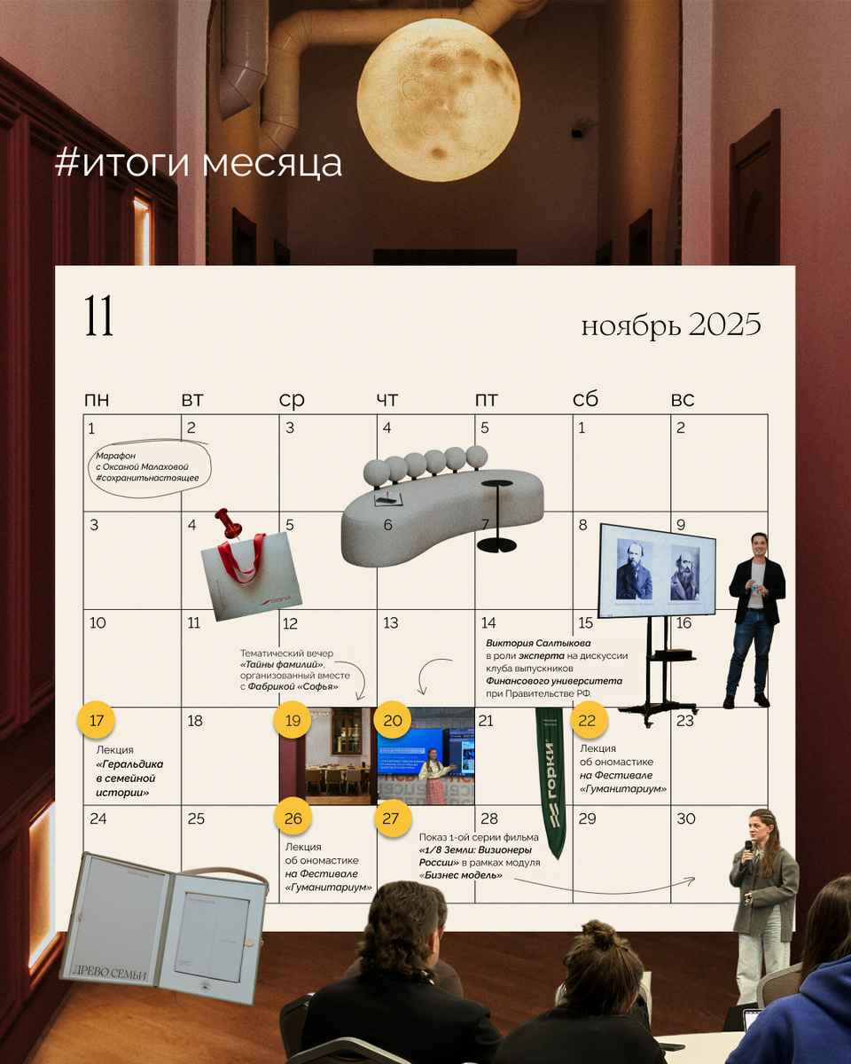 📌17 ноября руководитель Мастерской «Проекта Жизнь» Яна Мысовская вместе вместе с членом правления Союза геральдистов России Кириллом Переходенко провели лекцию «Геральдика в семейной истории» для шестиклассников Школы 91. Лекция была разработана специально под учебный план: из уроков истории дети уже знали о рыцарях, а теперь познакомились с видами и правилами создания гербов. В конце ребята получили анкету, которая поможет вместе с родителями выяснить, какие фамильные черты, истории и события могут лечь в основу будущего герба. 📌19 ноября в нашем офисе на Мясницкой прошел тематический вечер «Тайны фамилий», организованный вместе с Фабрикой «Софья». Руководитель научно-исследовательского отдела «Проекта Жизнь» Павел Пименов и куратор генеалогических проектов Полина Тищенко провели интерактивную лекцию о происхождении фамилий: как они образовывались, что обозначали и как их правильно «расшифровывать». Исполнительный директор «Проекта Жизнь» Анастасия Зайцева провела экскурсию по До