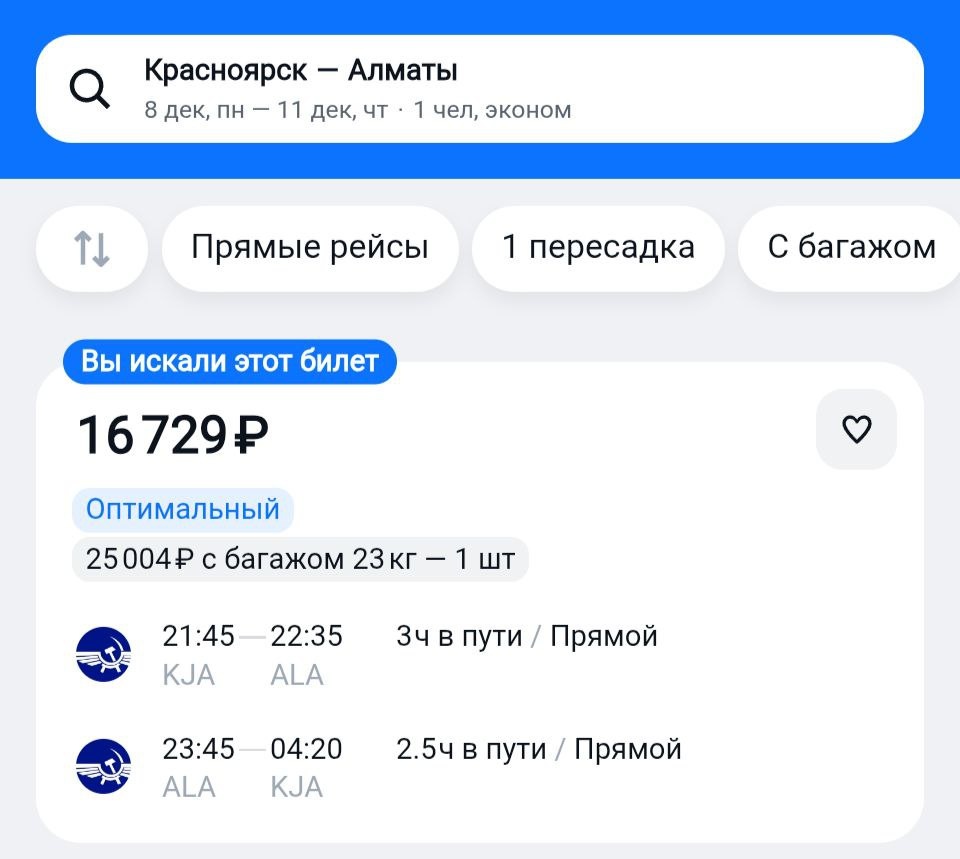 Новые внезапные билеты со скидками от нацперевозчика. На сей раз в Алматы.