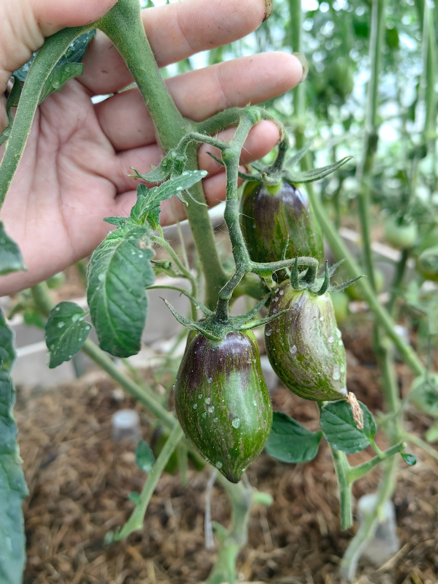 Вообще-то я люблю пересорты. Некоторые остаются у меня на долго, если соответствуют моим критериям отбора. "Фамилии" мне не так важны, как вкус и урожайность. Так что драмы от пересортов у меня не бывает никогда. Даже когда изредка попадаются не очень интересные по вкусу варианты. Кстати, пересорт бывает как из цветных пакетиков, так и в числе коллекционных. Все мы люди и, бывает, ошибаемся. Или чужое семечко забегает в кучку правильного сорта. А я возьми да вырасти именно его)) В этом году из обидного у меня был только один пересорт. Я очень хотела вырастить сорт Ночная Свеча чтобы сравнить его с Сердцем Любы. Тоже крупным оранжевым сердцем, лучшим по вкусу пока что из всех аналогичной окраски. Однако быстро стало понятно, что растет у меня что-то другое. Кустик получился всего примерно 150см. Я еще и в два ствола его оформила. А он возьми и окажись мелкоплодом))))) При чем окраска очень красивенькая, но на вкус примерно как морковка)))) Жесткий, пустоватый, проходной. Но красавчик,