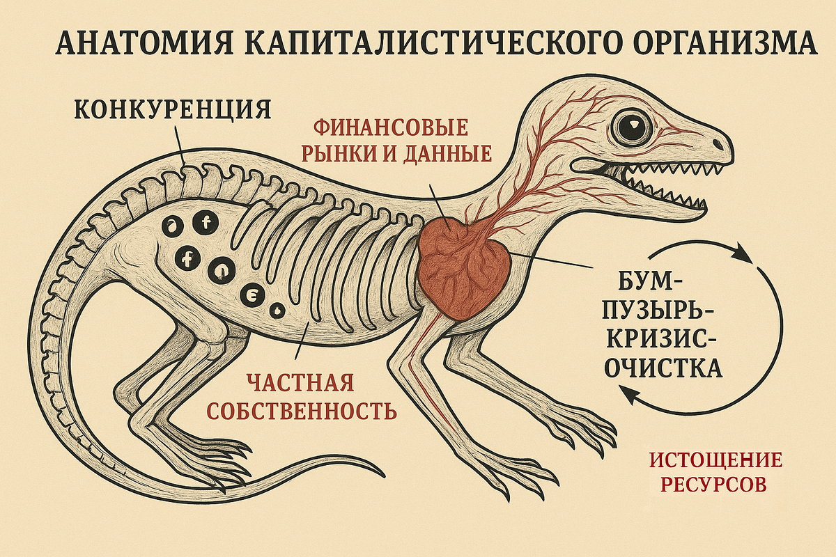 Отсюда — и высокая продуктивность системы, и её жестокость. Капитализм создаёт невероятные технологии, но та же гонка ломает компании и людей.