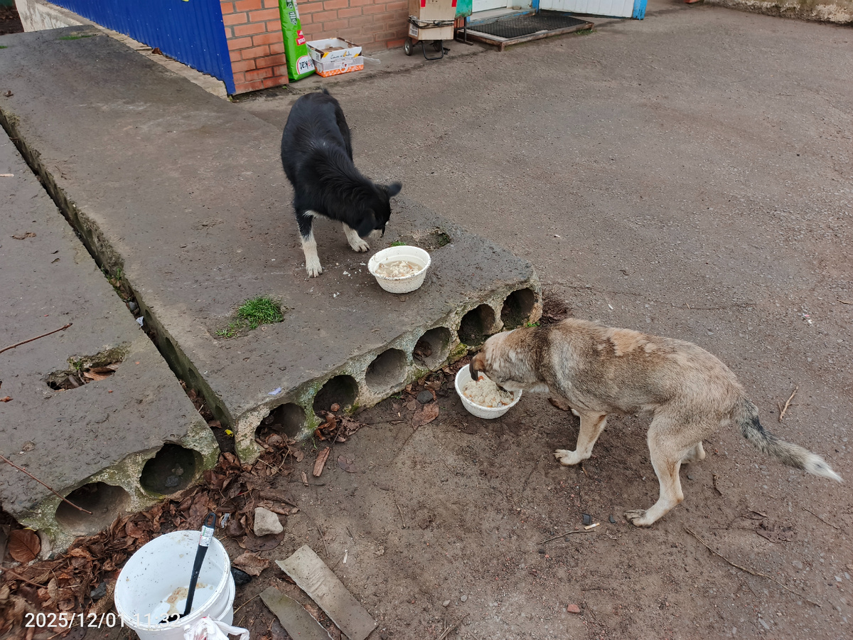 Привет! У нас сегодня отключали свет,обычно предупреждают,а в этот раз как то видимо забыли. Так как хлеба у меня много то не стала я сегодня варить кашу,а сварила бульон. Кстати,в последний раз брала мясное,а там оказалось две большие косточки. Они конечно с мясом,но их всего на два раза хватило,когда мягкое мясное беру то хватает на больше. Ну да ладно ,завтра схожу куплю. А сегодня пошла кормить собак бульон ,лапы куриные и хлеб, бульон из говяжьей кости. Лапы тоже в проверила,чтобы кушали хорошо. На фото Кукуся и Бим. Бим очень ласковый пёс и не смелый. Такое ощущение что его обижали. Покормила собак и пошла на чайковский к Лилии Михайловне . Сегодня пили чай с облепихой,мятой и ромашкой,очень вкусно получилось . А вы какой чай любите? Облепиху я покупала на рынке,мята растёт у хозяйки дома во дворе ,а ромашку собирала в поле. Вот такую ромашку нашла возле двора и это первого декабря ,а сирень чудит). Но сегодня пасмурно на улице и как то темно. Возможно будет ночью снег,а сей