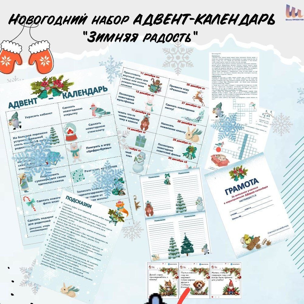 С 2019 года я делаю адвент-календарь для школьников. Помню, как тогда приходилось объяснять, что это такое и зачем он нужен. Сейчас всё стало гораздо проще — кажется, каждый второй учитель использует адвент в своей работе. Наш адвент-календарь «Зимняя радость»☃️🎄☃️ не только для развлечения, но и про создание семейных традиций, про тёплое совместное времяпрепровождение ребёнка и взрослого. Задания в нём можно выполнять не только в классе. Некоторые из них предполагают тёплые семейные моменты: — приготовить ужин дома, — испечь праздничные печеньки, — разгадать кроссворд, — сделать небольшое доброе дело. Друзья, стоимость набора— всего 390 рублей ❄ https://payform.ru/am5xBa0/ И весь набор материалов адвент-календаря будет у вас. В карточках подробнее 💫 Пусть декабрь будет волшебным! ✨