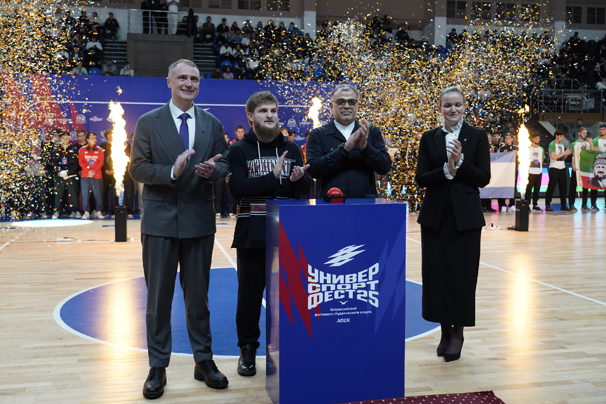 В столице Чеченской Республики — городе Грозный — состоялось торжественное открытие Всероссийского фестиваля студенческого спорта «УниверСпортФест» — масштабного спортивного события федерального уровня, которое объединило более 400 участников из 12 регионов Российской Федерации. В торжественной церемонии открытия фестиваля приняли участие Кадыров Ахмат Рамзанович — министр Чеченской Республики по физической культуре и спорту, Зайцева Александра Анатольевна — заместитель директора департамента физической культуры и массового спорта, Крюков Сергей Владимирович — президент Российского студенческого спортивного союза, Саидов Заурбек Асланбекович – помощник Главы Чеченской Республики, ректор ЧГУ им. А.А. Кадырова, Минцаев Магомед Шавалович – ректор ГГНТУ им. акад. М.Д. Миллионщикова и другие. Всероссийский фестиваль студенческого спорта «УниверСпортФест» стал крупной площадкой для развития массового и студенческого спорта, обмена опытом между регионами, а также популяризации здорового обр