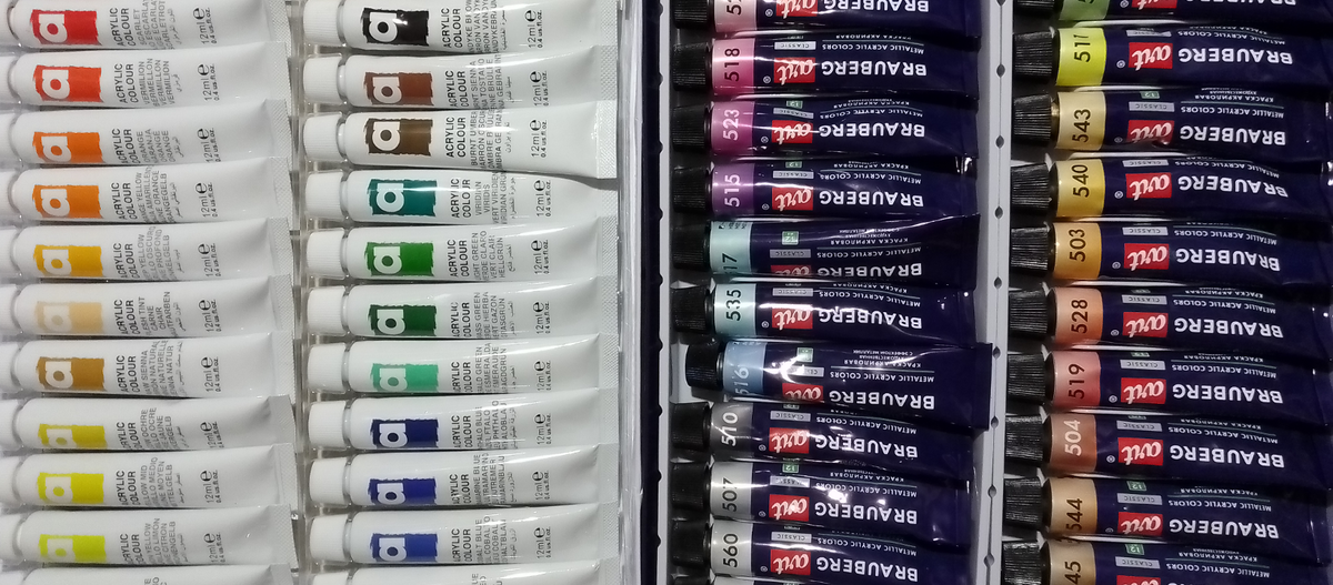 Два набора художественных акриловых красок купила - больших, по двадцать четыре цвета, обычные и металлик. Так разволновалась! Колеблюсь между потребностью немедленно расписать что-нибудь, и пониманием, что вечером у меня уже "прицел сбит". Это ведь первый раз в моей жизни😄 Раньше таким прагматиком была - покупала только основные цвета банками, металлики - строго по потребности, а сейчас вот прямо захотелось сразу набор, чтобы никаких ограничений. Ну, раньше, конечно, в городе я жила, и худмаги по пути с работы были, так что заказать набор в дебри - тоже в некотором смысле прагматичное решение. Тюбики кажутся маленькими, но на самом деле их на годы хватит, и многие цвета взаимозаменяемые. А ещё такая вот красота - медно-золотая краска. Мой любимый цвет!😄 Довольна, как слон - наборы (б/у, но в совершенно ничтожной степени) обошлись совсем дёшево, считая даже с доставкой на почту. Кстати, нашей почте пора подкинуть оценок и отзывов через мобильное приложение, о чём, пользуясь случа