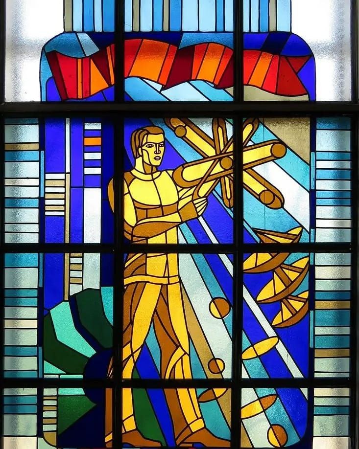 Витражи изумительны и отображают всю историю энергетики, начиная с преподнесения Прометеем людям дара в виде огня и заканчивая расщеплением ядра и полетами в космос.