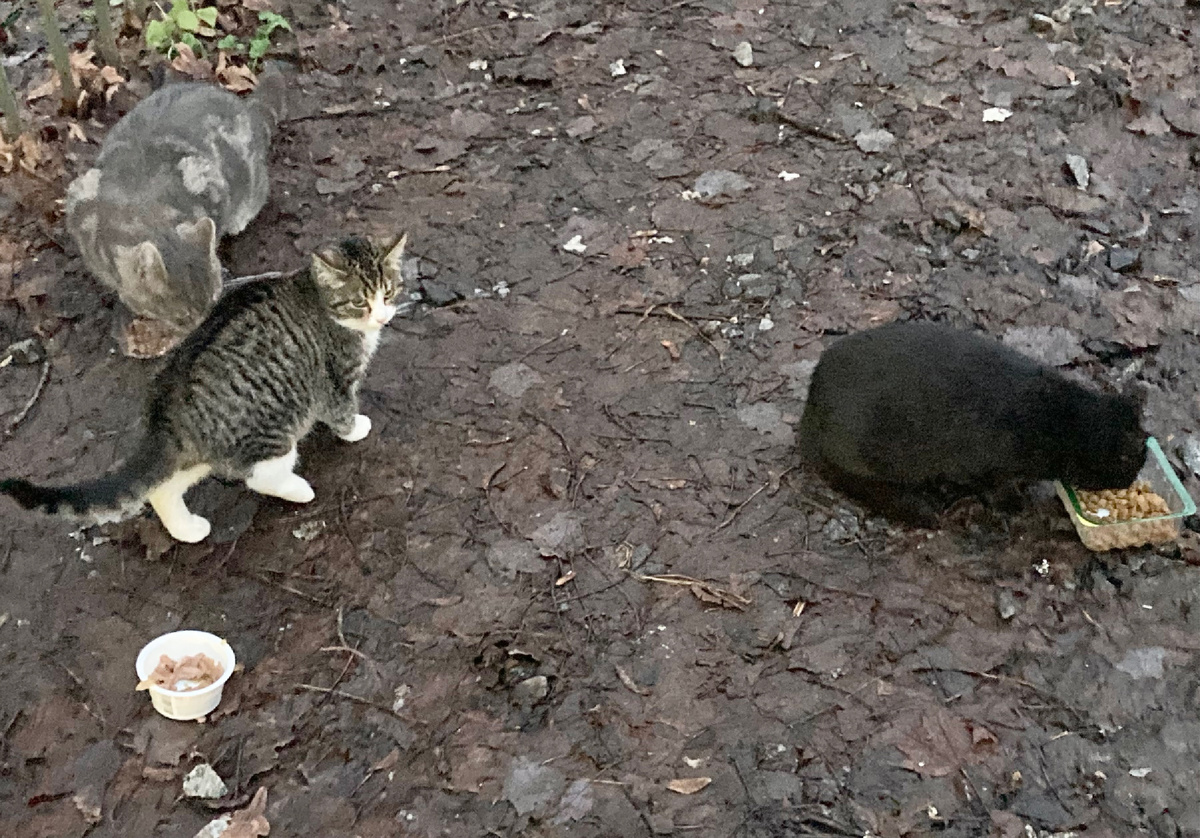 Милые мои котики приходят ровно в 16.30. Откуда они время знают? Всегда минута в минуту прибегают. Поели хорошо, котенка серого глажу, он ручной, шерстка такая плотная жесткая у него, милый невероятно. Сегодня снесли домик, в котором я им оставляла на ночь корм. Мешал домик кому-то, машины никому не мешают, а вот крошечный кошачий домик помешал. Теперь мне некуда ставить им сухой корм на ночь, да и влажный тоже, все намокнет под снегом и дождём, только приносить миски с собой и сразу уносить. Есть еще местечко возле церкви, где им мисочки тоже ставят, но и там открыто для дождя, короче, грустно это. Коты тоже удивились, что домика больше нет. Все сидели на том месте, где он был. Они так его любили, там всегда стояли их мисочки. Дворники унесли домик или еще кто? Я не знаю. Пустое место под яблоней. И со всех сторон машины, машины припаркованы, все машинам тесно, живем практически за городом, а во дворе нет места ни котам, не людям. Короче, кормить котов теперь сложнее. Еду надо уно