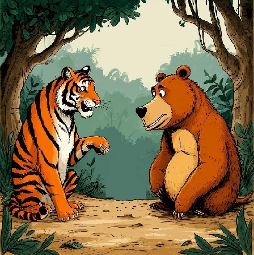Индонезийская сказка. Как-то раз сидел канчиль в своей норке и щелкал орешки. Вдруг видит: прямо к нему приближается тигр. «Пропал я», — подумал малютка канчиль, да так и затрясся от страха. Что было делать? Но хитрый зверек не растерялся. С треском раскусил он орешек, да так что скорлупа захрустела у него на зубах, и воскликнул: — Ох, до чего же вкусные глаза у этих тигров! Услышал тигр эти слова, и стало ему страшно. Попятился, развернулся и пошел прочь. Идет он по лесу, а навстречу ему медведь. Тигр медведя и спрашивает: — Скажи-ка, дружище, а не знаешь ли ты, что это за зверь сидит там в норе, да за обе щеки глаза тигров уплетает? — Не знаю, — отвечает медведь. — Пойдем посмотрим, — говорит тигр. А медведь уже чувствует, что ничем хорошим это не закончится и отвечает: — Н-е-е, как-то не хочется, у меня сегодня другие дела были. — Ничего, — говорит тигр, — мы свяжемся хвостами и пойдем вместе. Если что и случится, мы друг друга в беде не оставим. Вот связались они хвостами и пошл