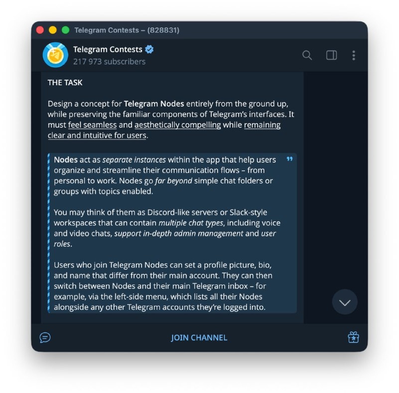 Telegram преобразится в нечто похожее на Discord — в мессенджере анонсировали новую функцию под названием Nodes. «Ноды» будут чем-то средним между серверами в Discord и рабочими пространствами в Slack. Пользователи смогут организовывать личные и рабочие каналы, создавая для каждого отдельный профиль и легко переключаясь между ними через стандартное меню. Информации о сроках запуска пока нет. В настоящее время проходит конкурс на лучший дизайн Nodes с призовым фондом в 50 тысяч долларов. Постмейкер - автоматическое ведение канала 🤖 Анимация | СhatGPT-4 | Помощь с резюме
