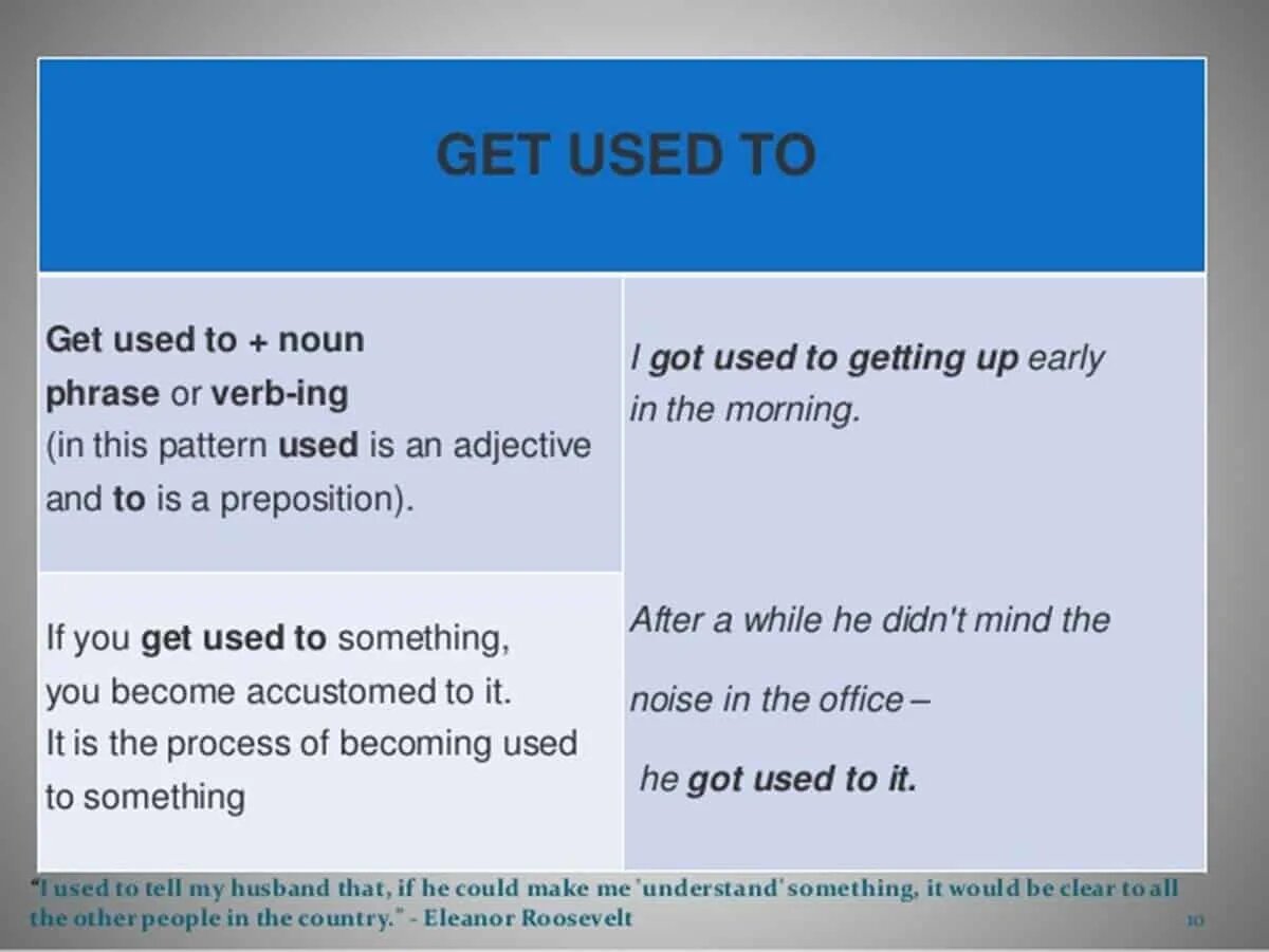 When it comes to learning English, there are many confusing grammar rules to master. One of these involves the use of “used to,” “be used to,” and “get used to.” These phrases may seem similar, but they have different meanings and uses. In this article, we will explore the differences between these three phrases and provide examples to help you understand how to use them correctly. Understanding “Used to” When we talk about something that happened regularly in the past but doesn’t happen anymore, we use “used to.” For example, “I used to play soccer every Saturday when I was a kid.” We can also use “used to” to talk about something that was true in the past but isn’t true now. For example, “I used to live in New York, but now I live in Los Angeles.” It’s important to note that “used to” is always followed by a base verb. For example, “I used to eat pizza every Friday” (not “I used to ate pizza every Friday”). Here are a few more examples of “used to” in action: We used to have a dog,