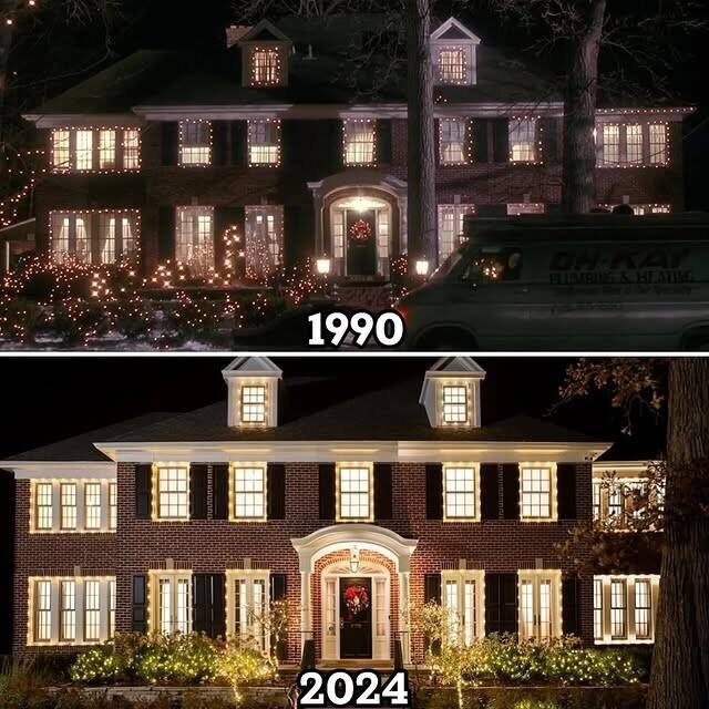 Что стало с особняком из «Один дома»? ⭐️ Первое декабря — идеальный повод вспомнить самый знаменитый «рождественский» дом в истории кино — особняк Кевина Маккаллистера из «Один дома». 🔘Дом находится в США, в тихом пригороде Чикаго — Уиннетка (Иллинойс), по адресу 671 Lincoln Avenue. И это реальный жилой дом. 🔘Кстати, он все еще частный. Но после 30 лет паломничества фанатов владельцам пришлось пойти на меры: в 2022 году вокруг участка появился высокий белый забор. Цель — не испортить фото, а защитить приватность: люди заходили на лужайку, стучались в дверь. Снимать с тротуара можно, но внутрь — нельзя. 🔘На самом деле почти все комнаты, которые мы помним (гостиная, кухня, чердак), были построены на студии. Реальными остались лишь фасад и та самая лестница в холле.