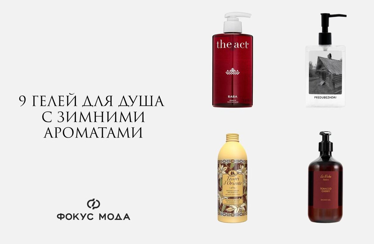Уют, тепло и аромат зимы Мы собрали 9 гелей для душа с зимними ароматами, которые наполнят ванную атмосферой праздника: ваниль и имбирь, табак и вишня, апельсин с корицей, жасмин и сандал. Они не только очищают и увлажняют кожу, но и создают настроение. Найдите свой идеальный аромат зимы — читайте новый материал на focusmoda.ru. ⚫️ focusmoda.ru