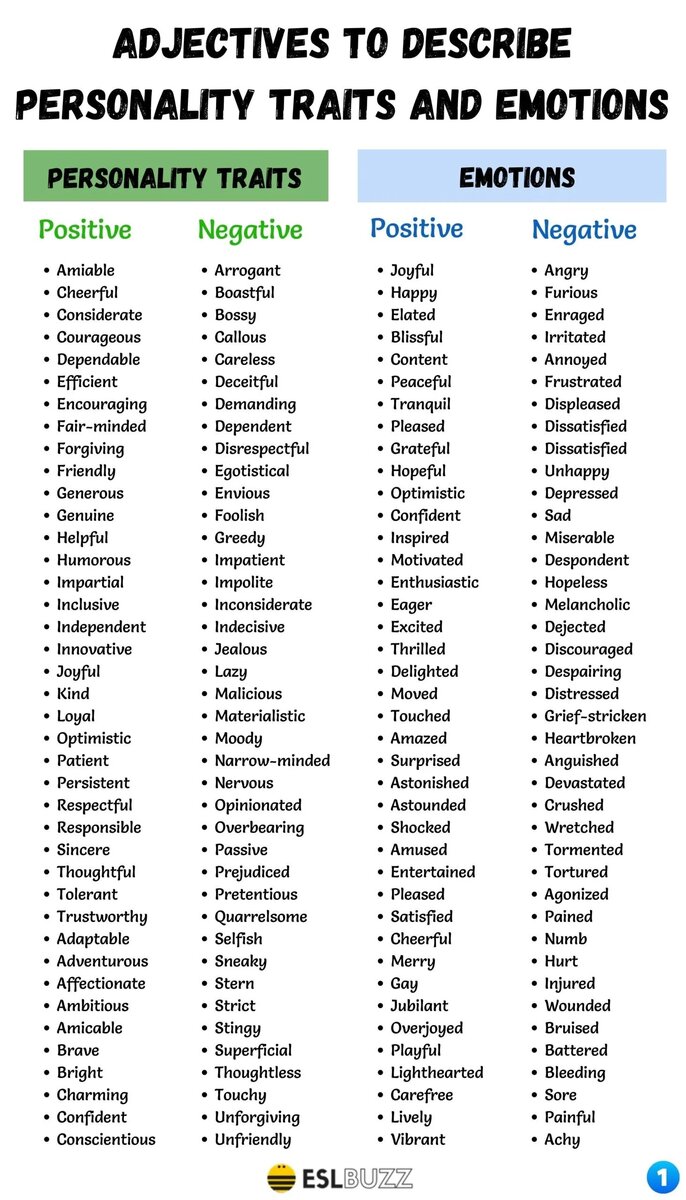 Adjectives Used to Describe Personality Traits and Emotions | Image