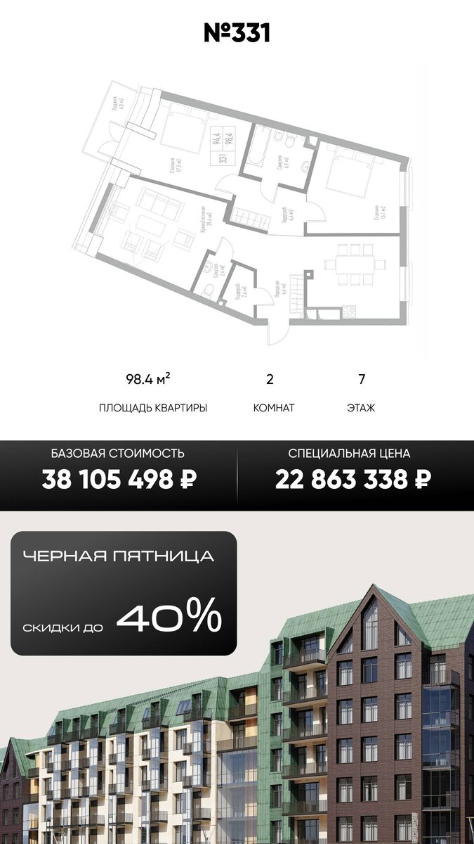 Финальная неделя Черной пятницы. Ваша квартира в Калининградской области по особой цене. Последние дни, чтобы купить квартиру от застройщика с максимальной выгодой для Вас. Акционные лоты в топовых ЖК. Успейте выбрать (цены действительны только эту неделю): 🏠 Фридланд-1 | №125 | 1к | 70.1 м² | 18 205 671 ₽ 🏠 Фридланд-2 | №292 | 1к | 45.7 м² | 9 957 664 ₽ 🏠 Теодор Кроне-1 | №41 | 3к | 85.4 м² | 12 568 660 ₽ 🏠 Теодор Кроне-2.1 | №12 | Студия | 30.3 м² | 4 714 446 ₽ 🏠 Рыбная Деревня | №331 | 2к | 98.4 м² | 22 863 338 ₽ 🏠 Дом на Яналова | №12 | 1к | 62 м² | 15 500 000 ₽ 🏠 Русь-1 | Ап. №146 - 231 | 2к | 72.2 м² | 37 912 076 ₽ 🏠 Русь-2 | Ап. №368 | Студия | 45.3 м² | 18 624 370 ₽ Напишите мне, чтобы забронировать или узнать подробнее @samarskayaeva #недвижимость #Калининград #купитьквартиру