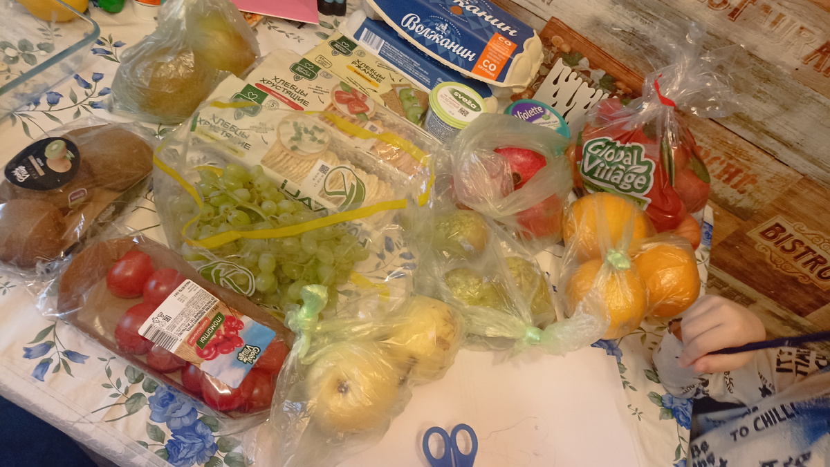 Доброго времени суток! Выходные пролетели, началась рабочая неделя, в которую влиться почему-то сложно. С воскресенья на понедельник я как обычно почти не спала, поэтому весь день была амебой. Ну ничего, это всего лишь один день. Что было в выходные? Заказывала доставку продуктов. Нормальное фото мне не сделать - младший сын всегда рядом. Ездили в магазин за мясом. Купили детское шампанское и кое-какие консервы к Новому году. Свинину разделала - часть на кусочки для тушения, часть для запекания сразу замариновала. Чем питались и питаемся? В пятницу запекала свинину в духовке. В субботу куриные голени так же в духовке. Фото нет, потому что есть там особо и нечего было. Для нашей семьи этого мало. Надо пару упаковок сразу готовить, а я всего одну (6 или 7 голяшек). Ещё сварила кастрюлю горохового супа. Делала капустный салат. Тушила фрикадельки в сметане. Ну и фрукты. Сын взвешивается каждый день. 100 грамм скинул) Основное блюдо сейчас - яйца. "А кушать хочется всегда" - наше со